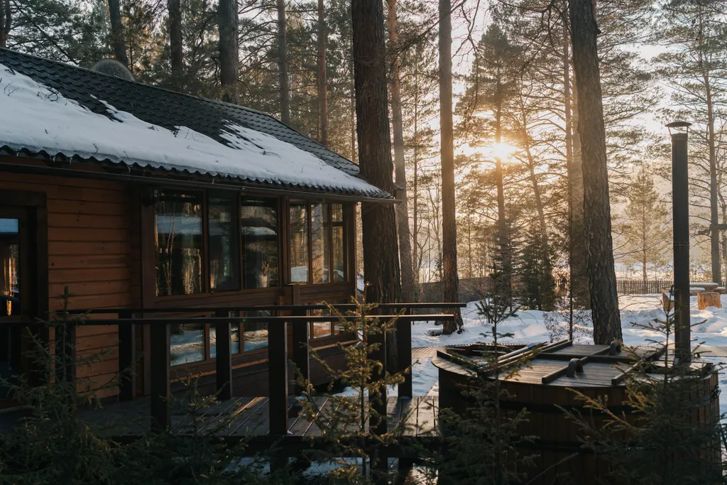 Просторные деревянные дома из соснового и кедрового бруса оснащены необходимыми для комфортного отдыха мебелью, бытовой техникой и санузлом. В распоряжении каждого дома просторная терраса,