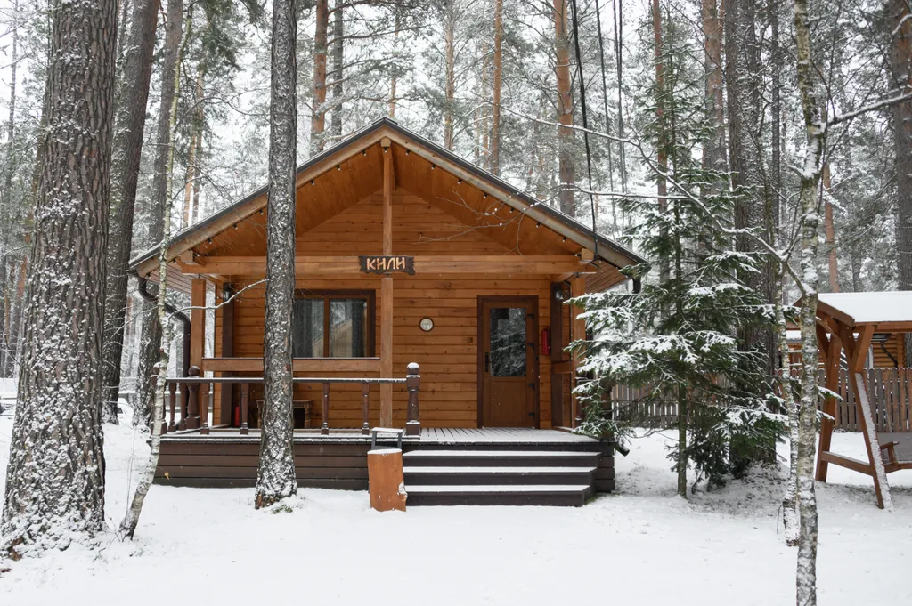 Уютный дом бруни с видом на лес, террасой и беседкой
